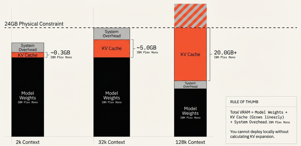 For Qwen 3.5 35B-A3B and Nemotron 30B β€” both sitting at exactly 24GB β€” there is zero headroom for KV cache before offload begins. In practice, keep context under 8K on a 24GB card unless Flash Attention is enabled.