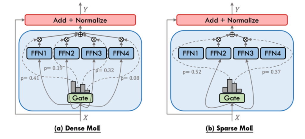 Dense FFN layers are replaced with N expert FFN networks. A learned router selects 2 experts per token β€” the rest stay idle for that forward pass.